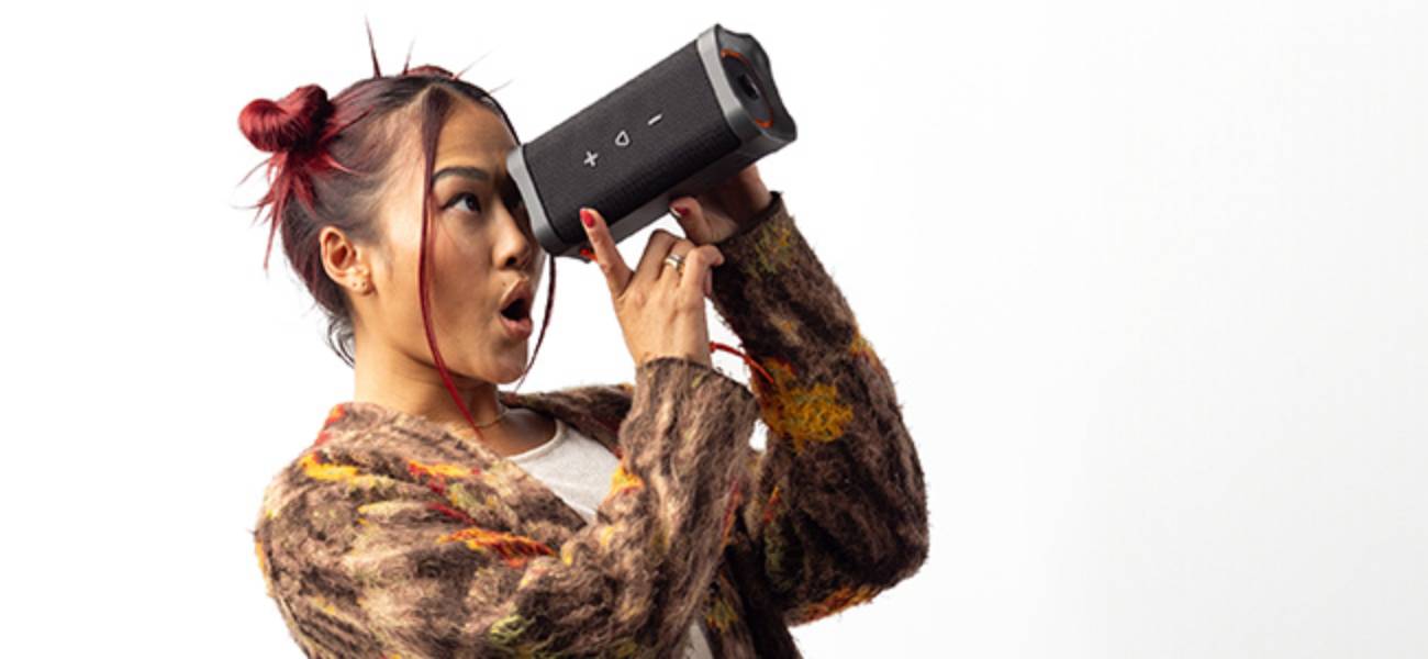 Dzięki niewielkim wymiarom i wadze zaledwie 458 g głośnik jest wyjątkowo poręczny. Dołączony pasek na nadgarstek ułatwia przenoszenie i pozwala mieć muzykę zawsze przy sobie.