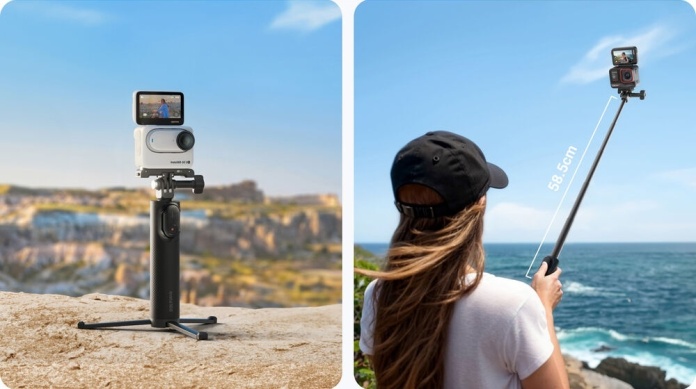 Wysięgnik teleskopowy z funkcją statywu Insta360 Mini 2-in-1 Tripod 2.0 znacznie poszerzy możliwości wykorzystania Twojej kamery sportowej. Niezwykle kompaktowy selfie stick osiąga po rozłożeniu aż 58,5 cm, a po złożeniu ma zaledwie 17cm. Uchwyt pomieści również opcjonalny pilot Insta360 Mini Remote, który zatrzymuje i uruchamia kamerę, w specjalnie zaprojektowanym gnieździe, dzięki czemu możesz sterować kamerą nawet po wysunięciu kijka.