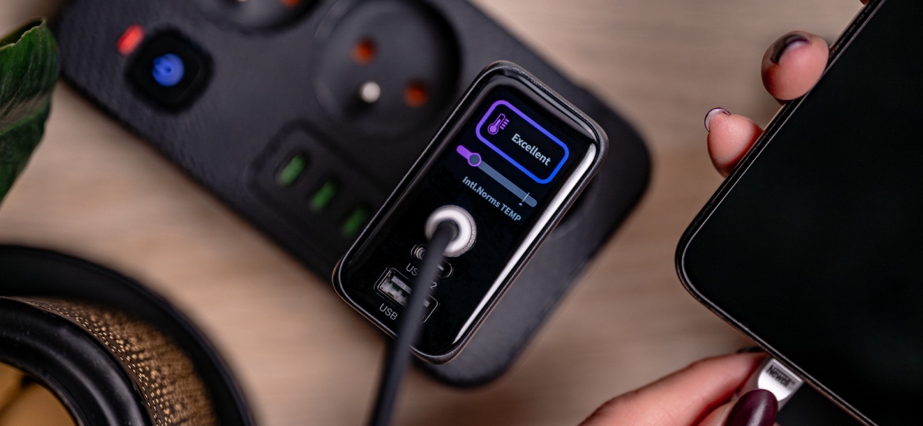 Newell GaN 100 W TFT to nowoczesna ładowarka sieciowa o mocy do 100 W, przeznaczona do zasilania laptopów, smartfonów, tabletów oraz innych urządzeń. Wyposażona w dwa porty USB-C i jeden USB-A, pozwala na jednoczesne ładowanie trzech sprzętów, automatycznie rozdzielając moc w zależności od potrzeb podłączonych urządzeń. Dzięki technologii GaN ładowarka jest bardziej efektywna, mniej się nagrzewa i ma kompaktowe wymiary, co czyni ją idealnym rozwiązaniem do codziennego użytku i w podróży. Duży, podświetlany ekran TFT umożliwia kontrolę parametrów pracy, takich jak aktualna moc, temperatura czy czas użytkowania, a możliwość obrotu wyświetlacza o 180° poprawia wygodę obsługi. Urządzenie obsługuje standardy szybkiego ładowania Power Delivery oraz Quick Charge i posiada zaawansowane zabezpieczenia chroniące przed przegrzaniem, przeciążeniem, przepięciem, przeładowaniem oraz zwarciem. Dzięki szerokiemu zakresowi napięcia wejściowego 110–240 V ładowarka sprawdzi się także podczas podróży, a 40-miesięczny program wsparcia producenta gwarantuje długotrwałe bezpieczeństwo użytkowania.