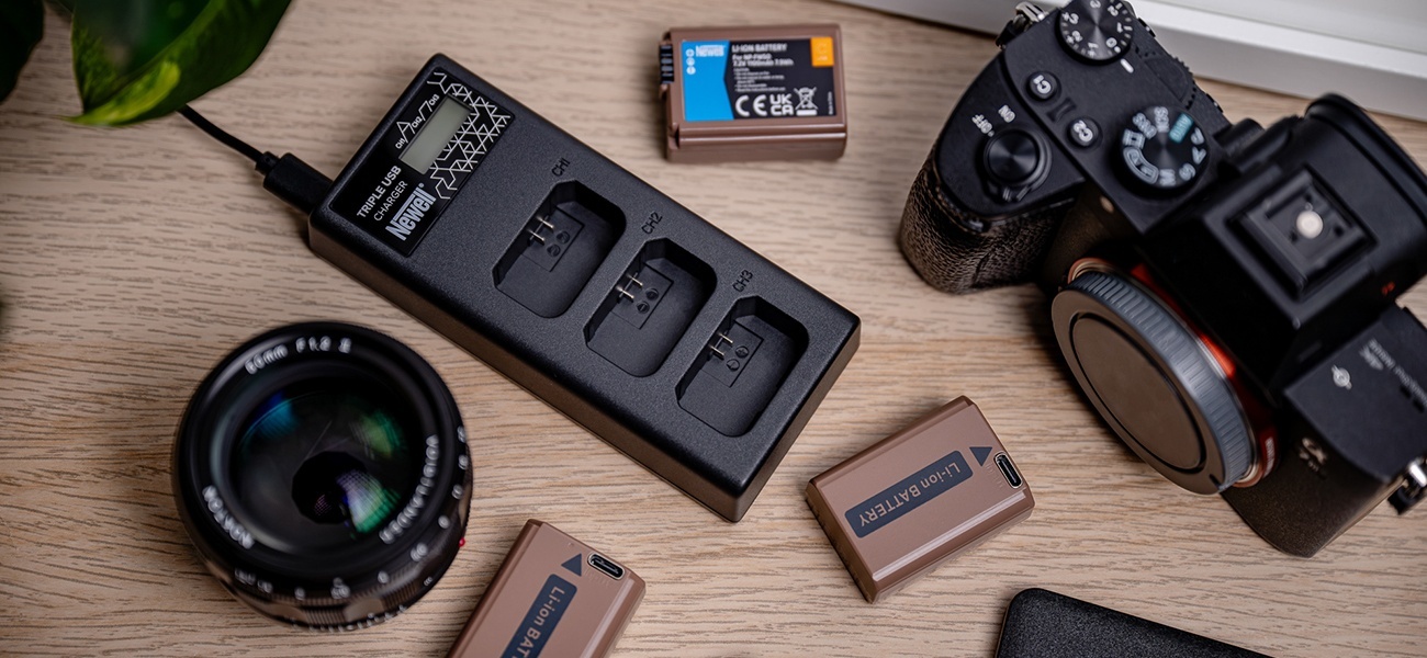 - ładowarka trzykanałowa Newell CD-USB-C do akumulatorów LP-E6 do Canon