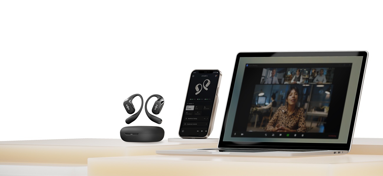 Słuchawki wykorzystują Bluetooth 5.4 z funkcją parowania wielopunktowego, co pozwala na płynne przełączanie między dwoma urządzeniami, np. smartfonem i laptopem. Czas odtwarzania wynosi do 11 godzin na jednym ładowaniu oraz do 48 godzin z etui ładującym. Czas czuwania wynosi do 270 dni, co czyni OpenFit 2+ niezawodnym towarzyszem codziennego użytkowania.