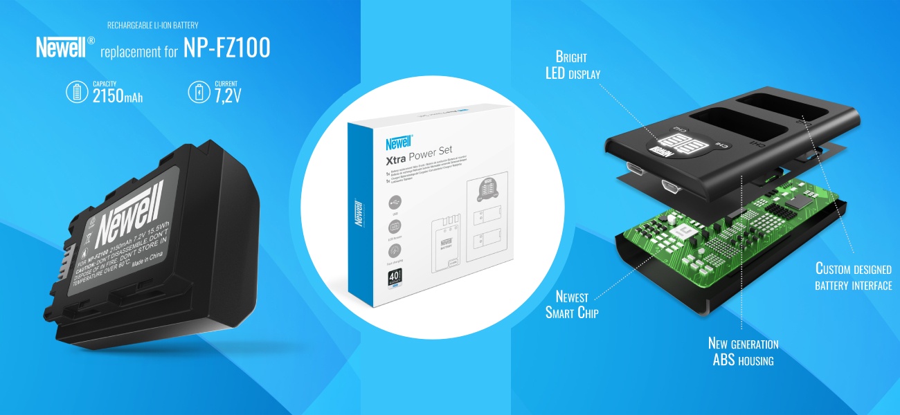 Zestaw ładowarka dwukanałowa DL-USB-C i akumulator NP-FZ100 Newell do Sony