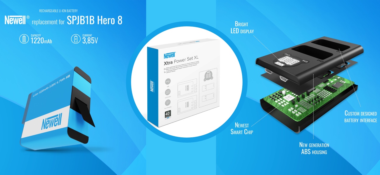 Zestaw ładowarka dwukanałowa Newell DL-USB-C i dwa akumulatory SPJB1B do GoPro 8